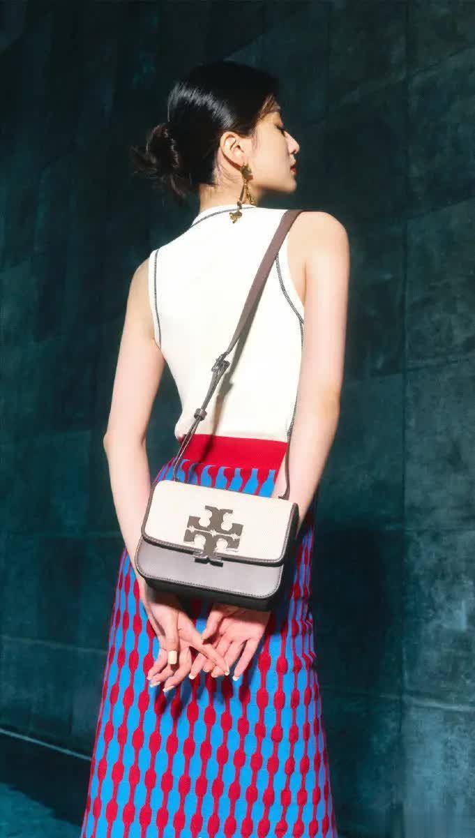 再看她斜挎的包包——并没有选择撞色或夸张款,而是用低饱和度的米色+棕边,稳住整体节奏,体现出搭配者极强的控制力。